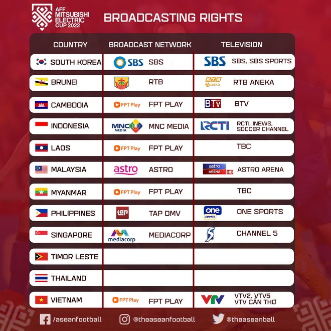 Thái Lan cùng với Timor Leste chưa có bản quyền AFF Cup 2022.