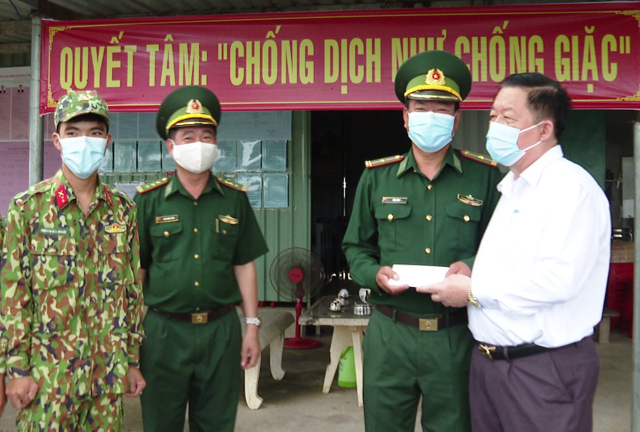 Trưởng Ban Tuyên giáo Trung ương Nguyễn Trọng Nghĩa tặng quà chốt phòng dịch Đồn Biên phòng Cửa khẩu Phước Tân