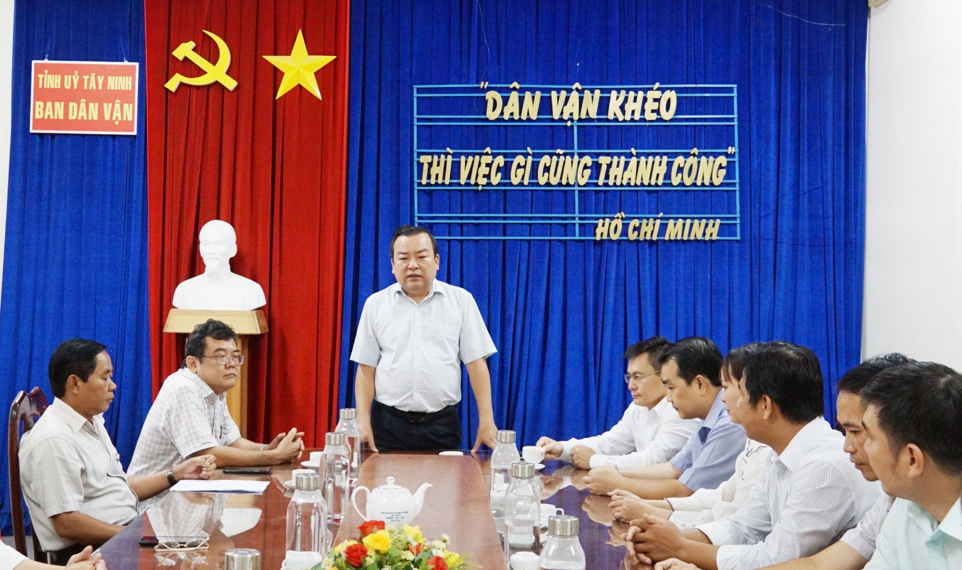 Tại Ban Dân vận Tỉnh uỷ, Phó Bí thư Thường trực Tỉnh uỷ Phạm Hùng Thái tặng hoa, gửi lời chúc mừng tốt đẹp nhất đến tập thể lãnh đạo, cán bộ, công chức Ban Dân vận Tỉnh uỷ và những người làm công tác dân vận trong toàn tỉnh nhân kỷ niệm Ngày truyền thống của ngành.