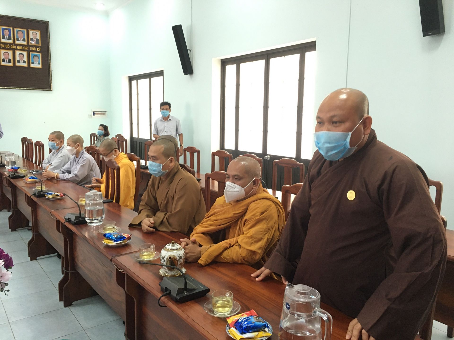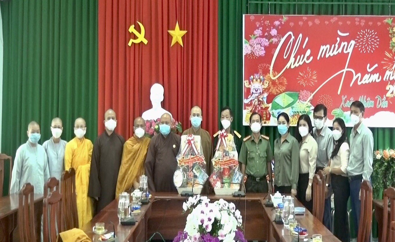 Dịp này, Ban trị sự GHPGVN tỉnh tặng quà chúc tết Huyện ủy, HĐND, UBND, UBMTTQ Việt Nam huyện, Phòng Nội vụ, Công An, Quân sự huyện.