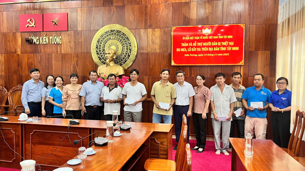 Sáng 14/11, Phó Chủ tịch UBMTTQ Việt Nam tỉnh Tây Ninh, Chủ tịch Hội Nông dân tỉnh Nguyễn Thanh Tùng dẫn đầu đoàn công tác đến thăm và trao hỗ trợ cho các hộ dân bị thiệt hại do mưa lớn, lũ gây ra trên địa bàn phường Kiến Tường, tỉnh Tây Ninh.
