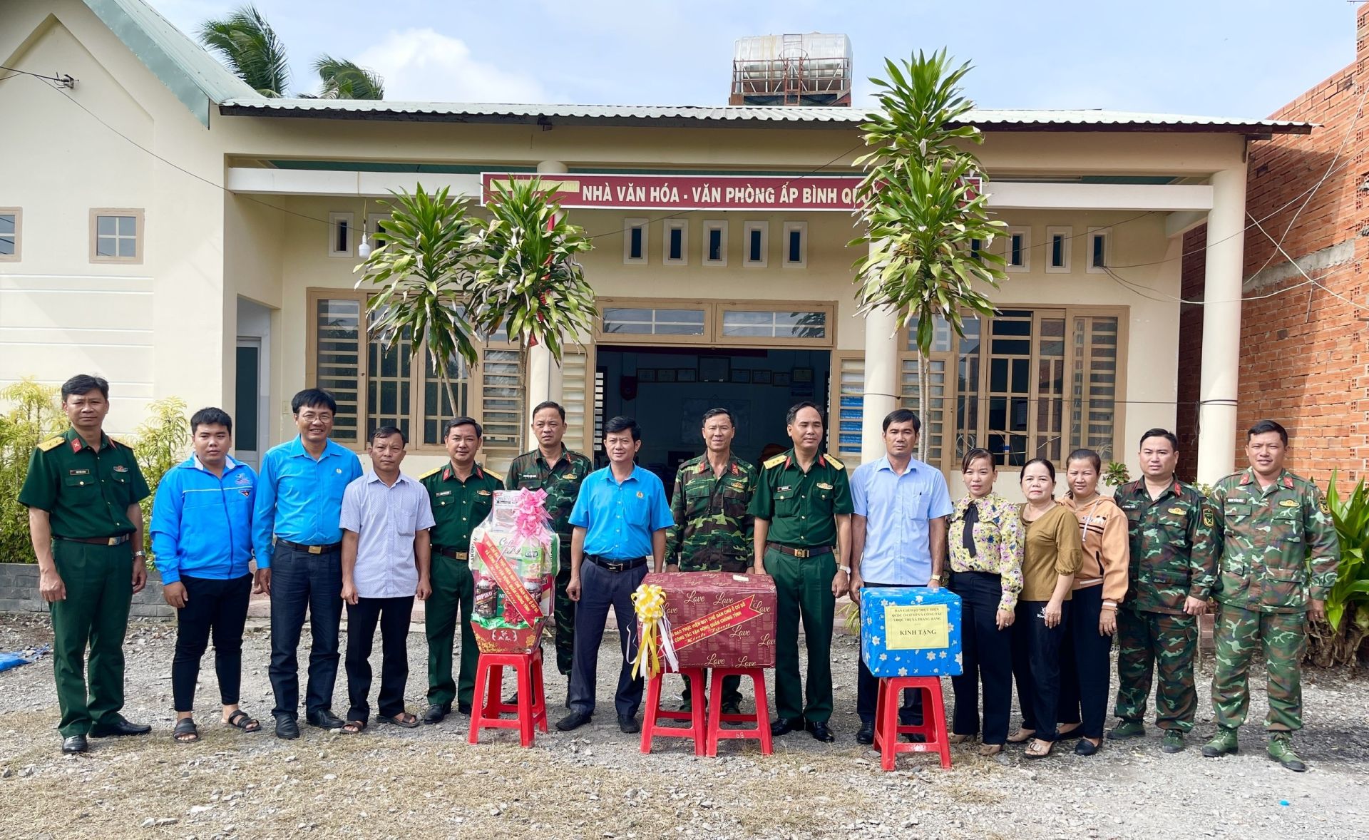 Thăm, tặng quà cán bộ, chiến sĩ Trung đoàn 5/Sư đoàn 5 đang làm công tác dân vận tại xã Phước Bình, thị xã Trảng Bàng.