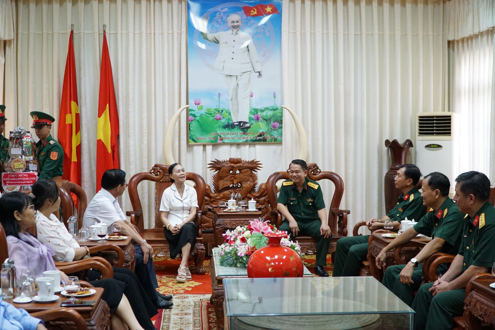Tiếp đoàn có Đại tá Nguyễn Thành Tâm- Phó chỉ huy trưởng, Tham mưu trưởng Bộ Chỉ huy Quân sự tỉnh. Tham dự buổi giao lưu còn có đại diện lãnh đạo Ban Tuyên giáo Tỉnh uỷ, Ban Dân vận Tỉnh uỷ.