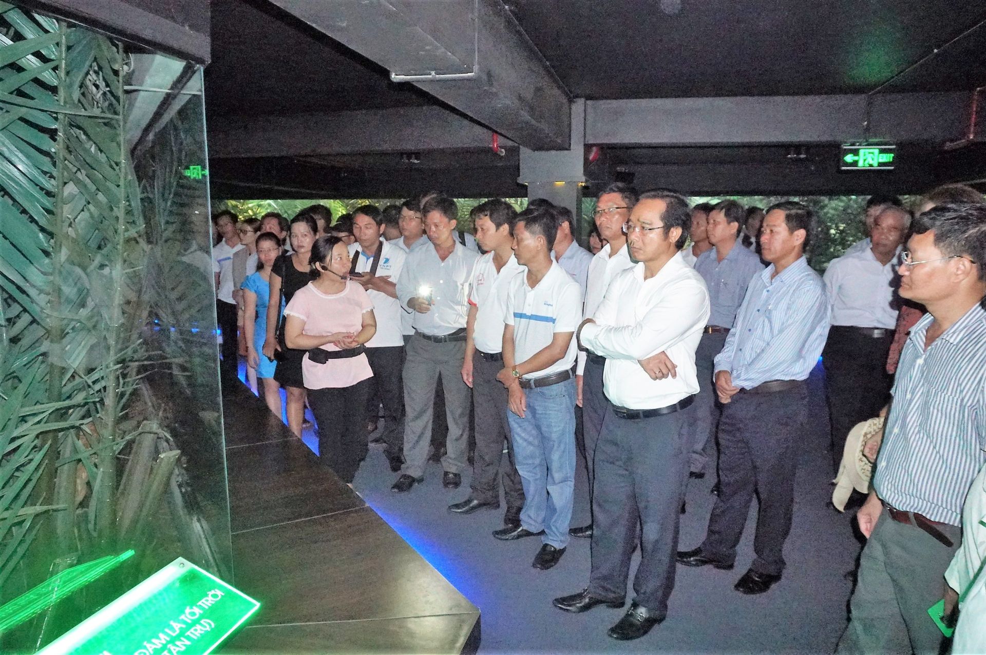 Toàn bộ Không gian trưng bày này tối đen như mực. Khi khách vào tham quan, hướng dẫn viên mới lần lượt mở hệ thống đèn chiếu sáng từng chuyên đề và giới thiệu nội dung của chuyên đề đó. Cách làm này giúp du khách tập trung theo dõi từng chuyên đề, chứ không tự ý đi lại lung tung như nhiều nơi trưng bày khác. Đặc biệt, trong mỗi chuyên đề, hình ảnh nhân vật, đồ vật, cây cỏ, sông nước, làng mạc được tái hiện lại một cách cực kỳ sinh động.