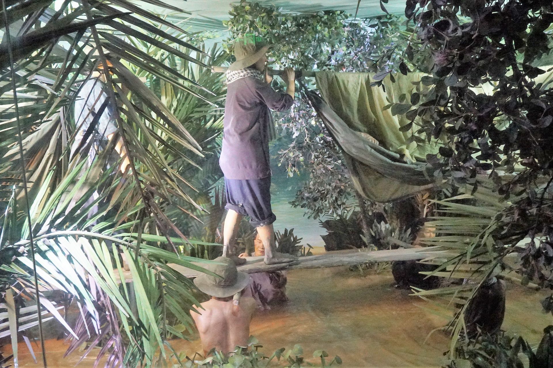 Hình ảnh cuộc chiến tranh nhân dân trên mảnh đất Long An được phục dựng chi tiết theo kiểu không gian 3D, có tiếng chim hót véo von, tiếng suối chảy róc rách. Đó là những ấn tượng ban đầu, khiến tôi phải xuýt xoa khi đến tham quan Không gian trưng bày tại Công viên tượng đài Long An, tại TP Tân An.