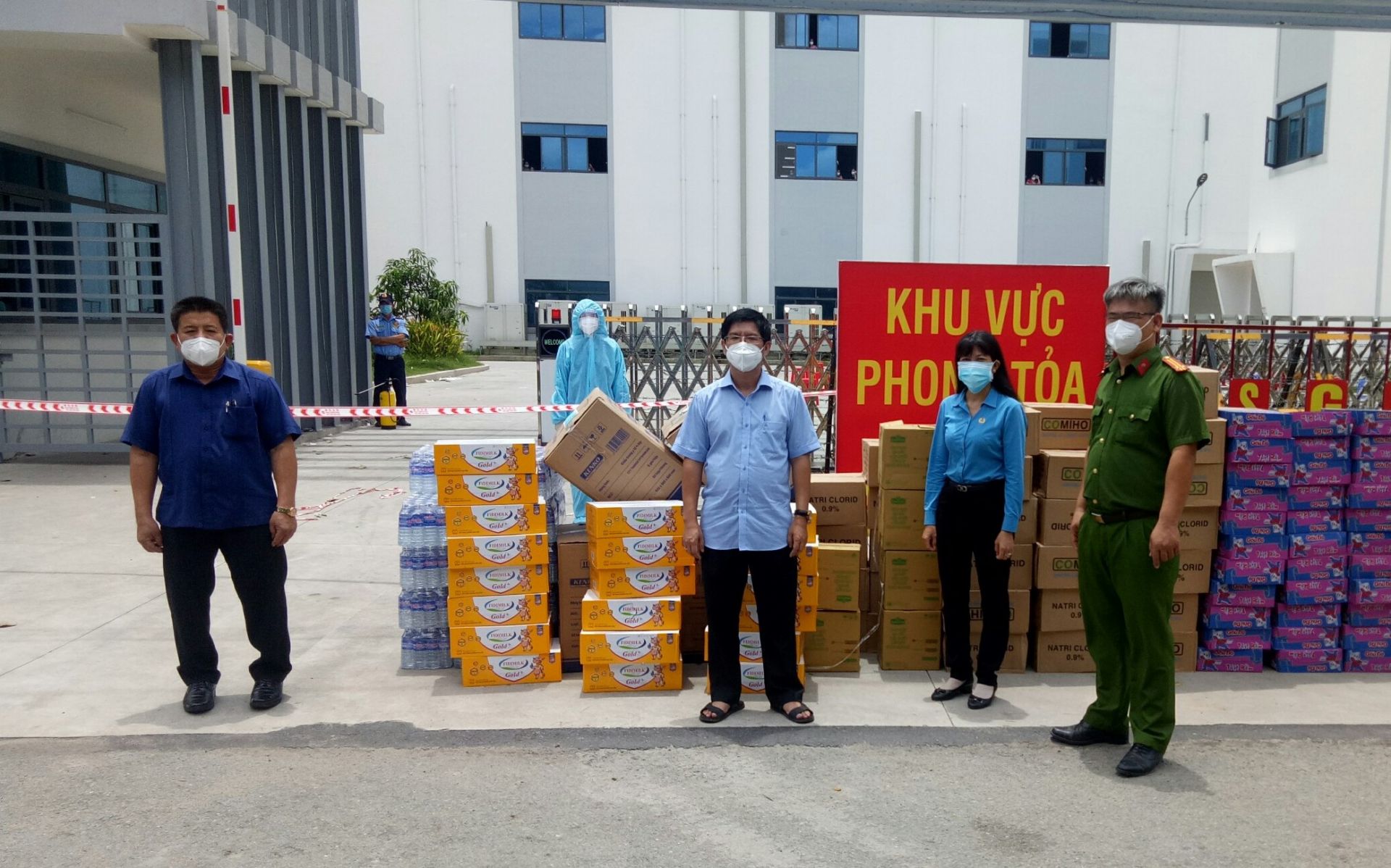 Sáng 26.7, ông Võ Văn Dũng - Chủ tịch Liên đoàn lao động tỉnh và bà Nguyễn Thị Kim Liên – Chủ tịch Công đoàn khu kinh tế đến thăm, tặng quà khu vực phong tỏa, cách ly thuộc Công ty TNHH da Đức Tín Việt Nam, Khu chế xuất công nghiệp Linh Trung III (phường An Tịnh, thị xã Trảng Bàng).