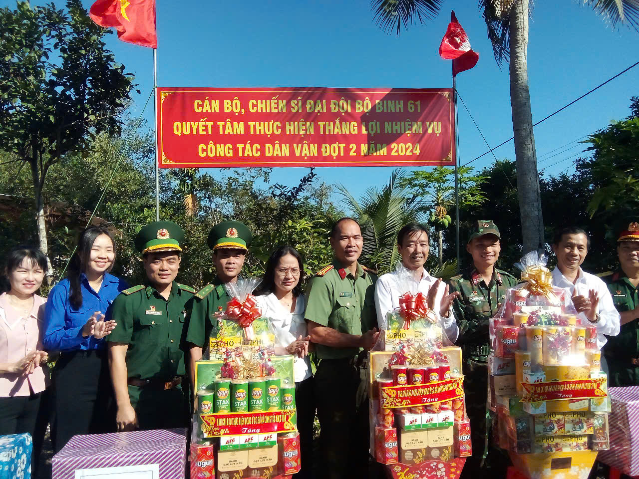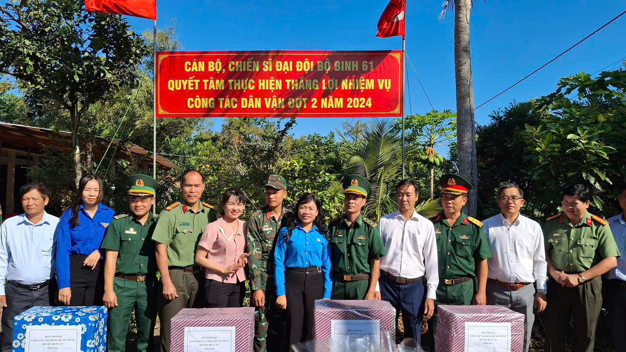 Ban chỉ đạo tỉnh và huyện đã gửi lời chúc sức khỏe đến cán bộ, chiến sĩ; đồng thời ghi nhận những kết quả của các cán bộ, chiến sĩ LLVT huyện đã nỗ lực hoàn thành tốt nhiệm vụ ra quân phối hợp liên ngành làm công tác dân vận đợt 2.2024 trên địa bàn.