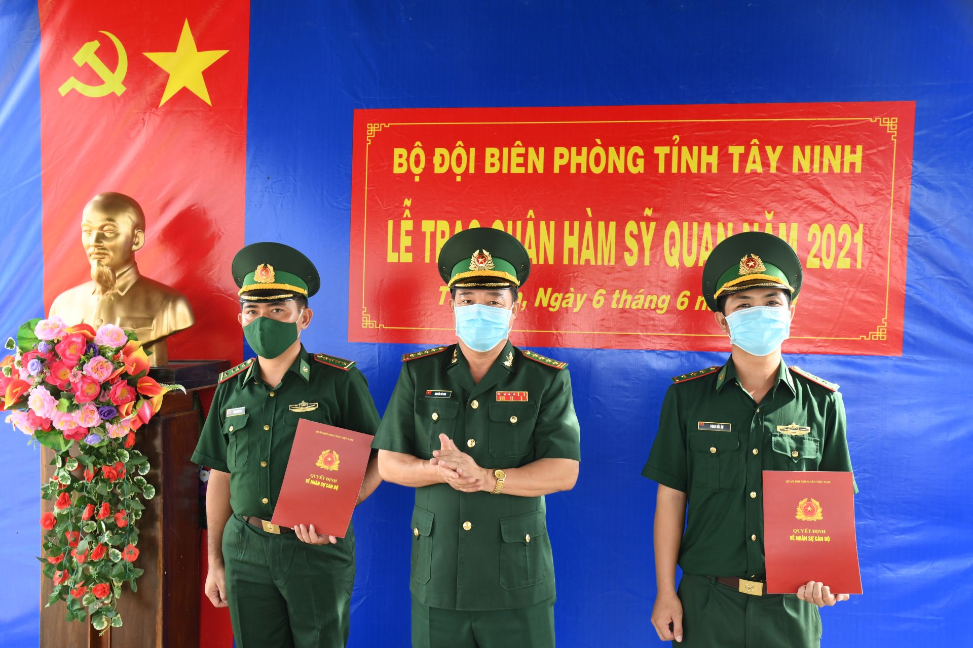 Chiều 6.6, Bộ Chỉ huy Bộ đội Biên phòng tỉnh Tây Ninh và các đơn vị cơ sở đồng loạt tổ chức Lễ trao quyết định thăng quân hàm cho 43 sĩ quan cấp uý đến niên hạn hiện đang thực hiện “nhiệm vụ kép” trên toàn tuyến biên giới Tây Ninh.