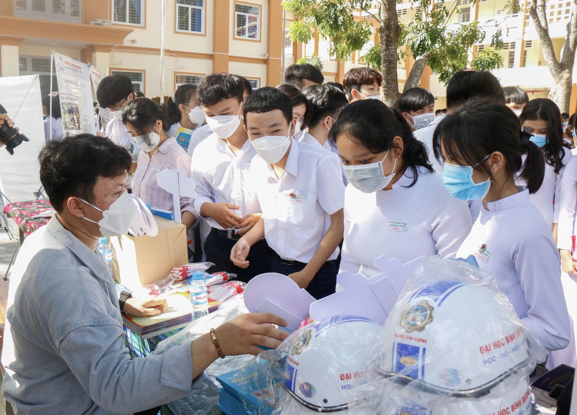 Dịp này, Trường đại học Bình Dương tặng 10 suất học bổng, mỗi suất trị giá 1 triệu đồng cho các em học sinh vượt khó học tốt của Trường THPT Trần Đại Nghĩa. Điểm nhấn trong chương trình là các gian hàng giới thiệu, tư vấn các ngành nghề, giúp các em học sinh có thể tiếp cận, tìm hiểu và trải nghiệm, từ đó đưa ra những quyết định đúng đắn trong chọn lựa ngành nghề, chuẩn bị sẵn sàng cho kỳ tuyển sinh sắp đến.