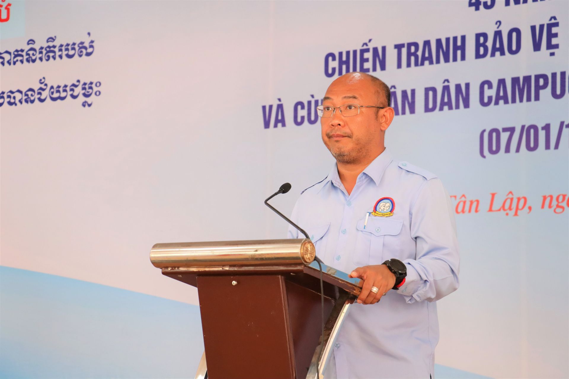 Ngài Toch Polyva – Phó Tỉnh trưởng, Phó Chủ tịch Hội Liên hiệp Thanh niên Campuchia tỉnh Svay Rieng bày tỏ sự biết ơn đối với quân dân Việt Nam trong cuộc chiến tranh đẩy lùi quân diệt chủng.