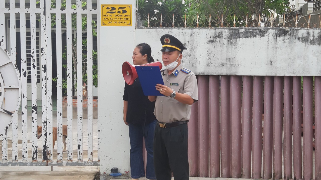 Ngày 14.4, Hội đồng cưỡng chế thi hành án thành phố Tây Ninh tổ chức cưỡng chế thi hành án đối với ông Nguyễn Hồng Phúc và bà Phạm Thị Kim Thanh ở khu phố 1 phường IV.