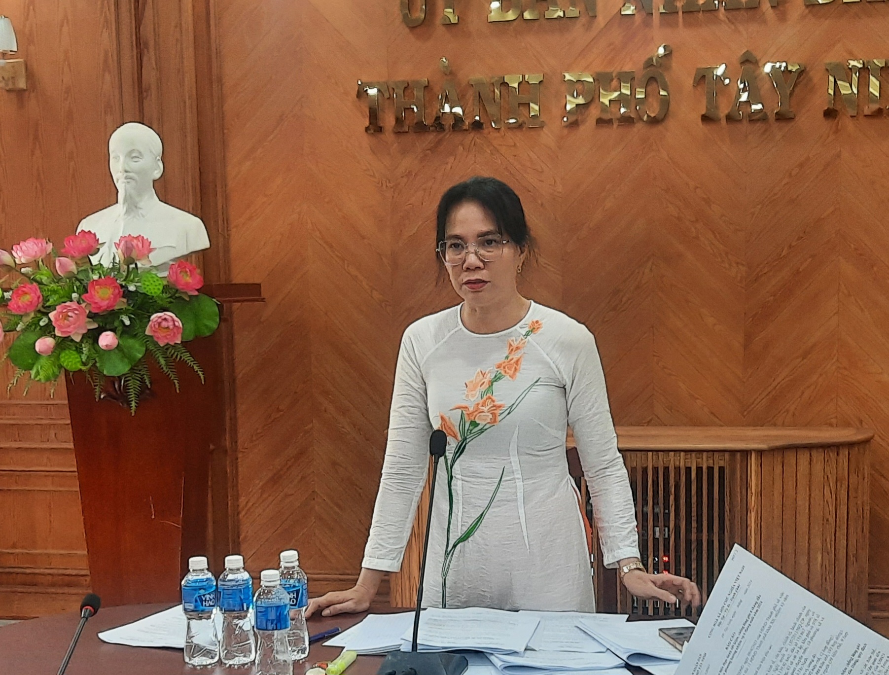 Ngày 27.5, UBND thành phố Tây Ninh tổ chức hội nghị đánh giá tình hình kinh tế - xã hội, quốc phòng - an ninh, xây dựng chính quyền 6 tháng đầu năm 2024. Bà Nguyễn Thị Hoàng Oanh- Phó Chủ tịch UBND Thành phố chủ trì hội nghị.