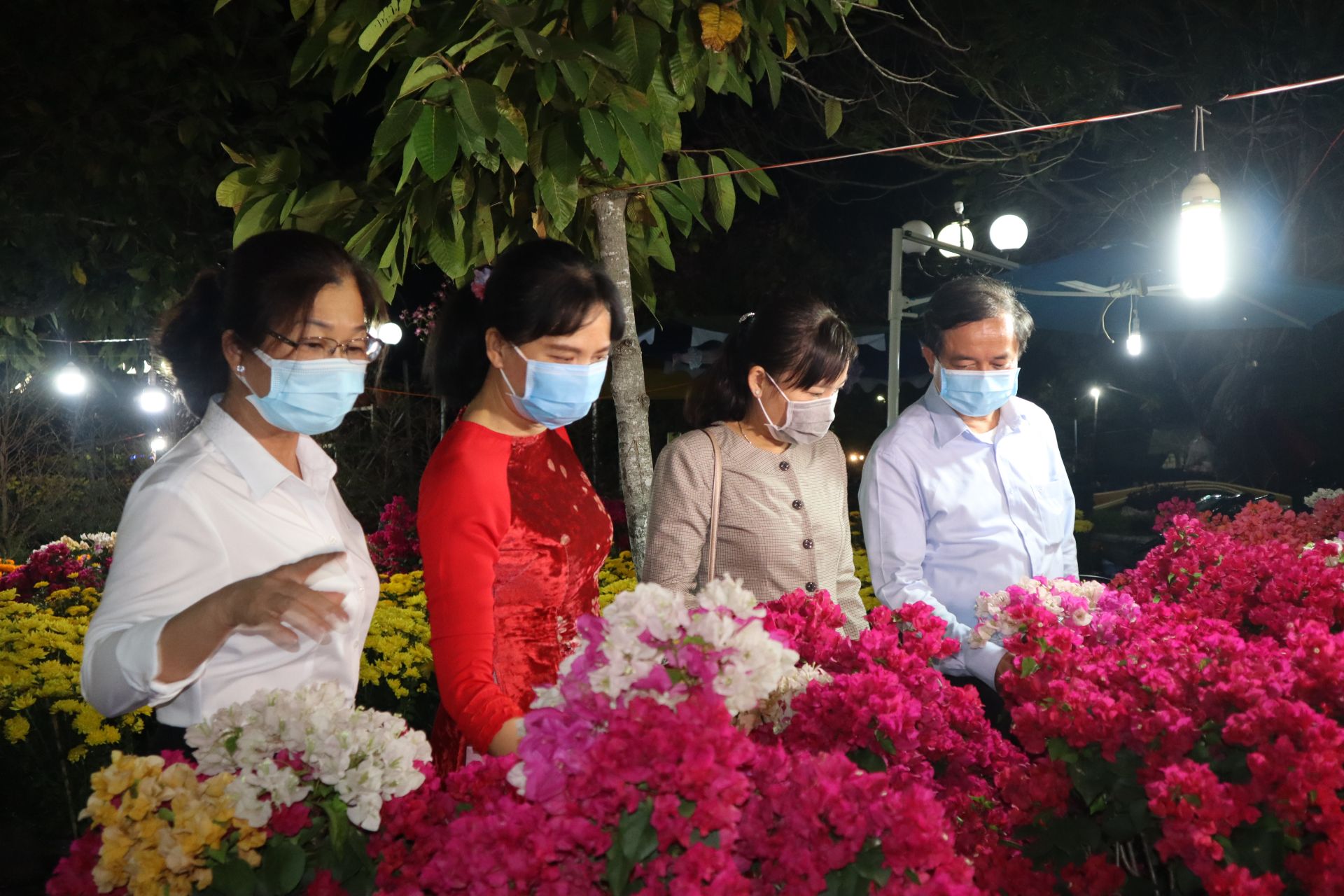 Theo ghi nhận của phóng viên, trong đêm khai mạc, người dân tham quan Chợ hoa Xuân thành phố có ý thức phòng chống dịch Covid – 19, đa phần đều mang khẩu trang trong khi tham dự lễ khai mạc và tham quan, mua sắm.