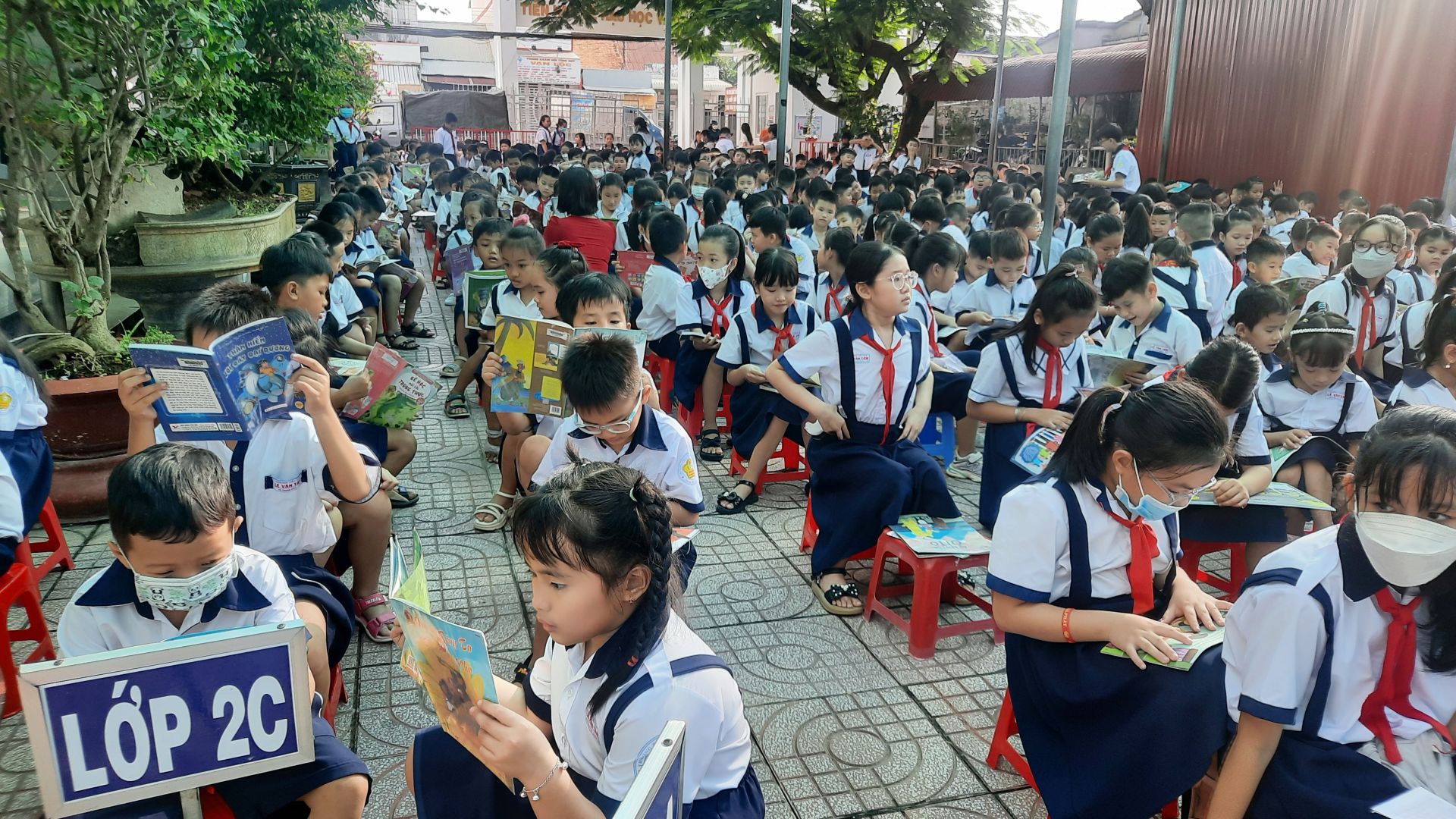 Bên cạnh đó, trường Tiểu học Lê Văn Tám tổ chức hội thi trưng bày và giới thiệu sách, góp phần tôn vinh giá trị của sách, từ đó giúp lan toả, khơi dậy niềm đam mê đọc sách, ý thức tự học và học tập suốt đời của học sinh. Hội thi gồm 5 đội đại diện cho các khối lớp trong nhà trường; kết quả, các em học sinh khối 3 đạt giải Nhất.