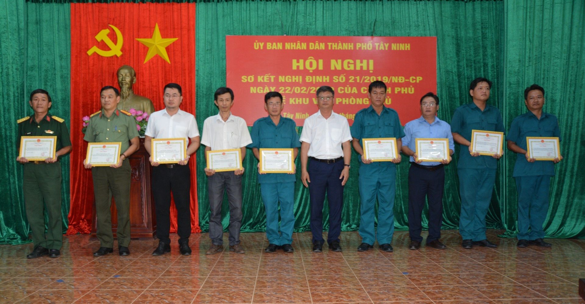 Dịp này, UBND Thành phố tặng giấy khen cho các tập thể, cá nhân tiêu biểu trong thực hiện Nghị định số 21/2019/NĐ-CP ngày 22.2.2019 của Chính phủ về khu vực phòng thủ.