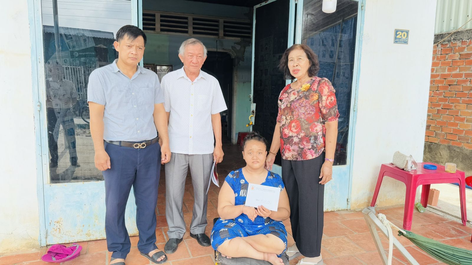 Sáng cùng ngày, Hội Nạn nhân chất độc da cam/dioxin Thành phố đến nhà trao vốn hỗ trợ sinh kế là 5 triệu đồng cho em Hồ Nguyễn Hoài Nam (sinh năm 2004, ngụ khu phố Ninh Đức, phường Ninh Thạnh) là nạn nhân chất độc da cam, bị liệt hai chân từ nhỏ.