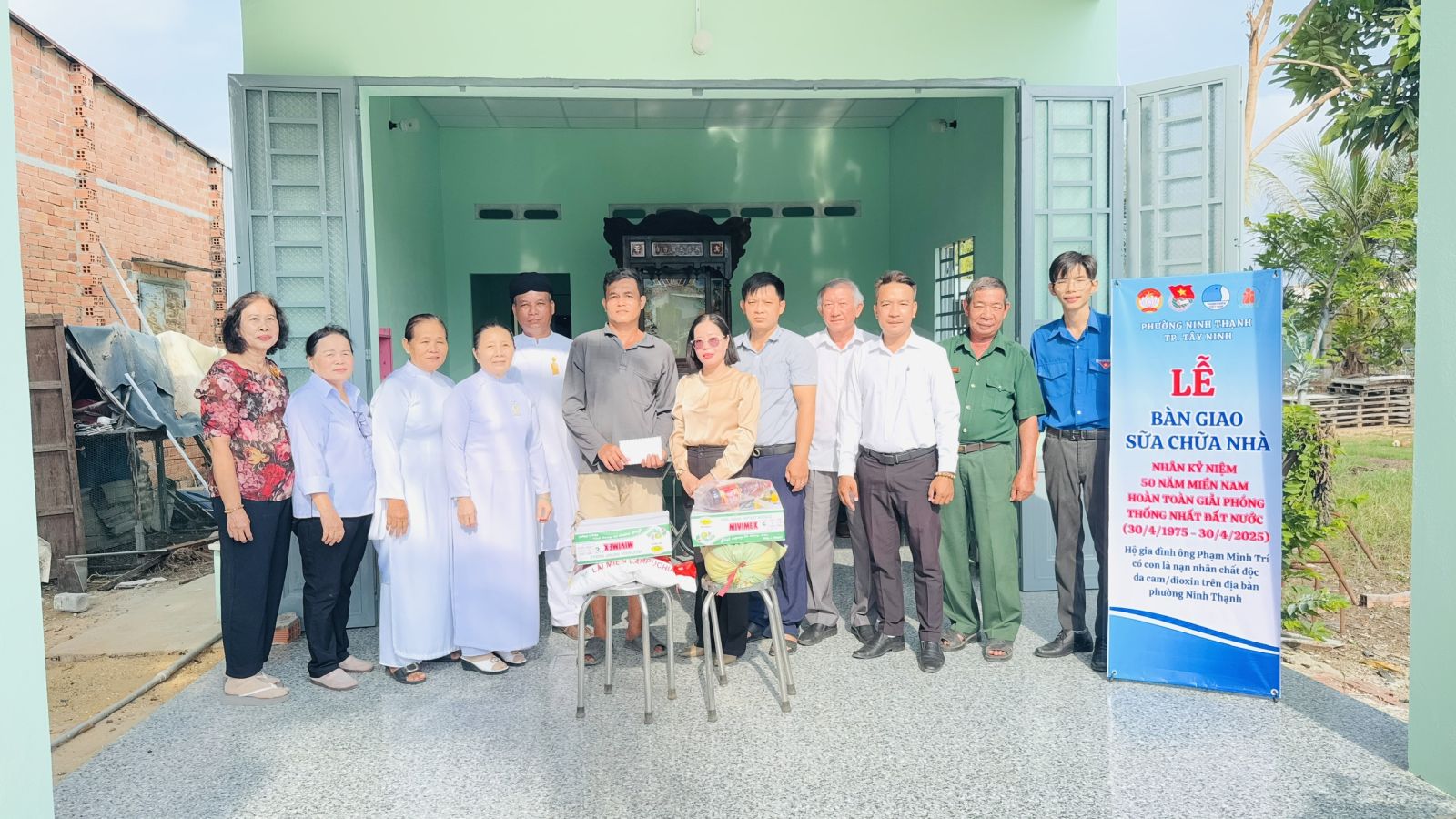 Sáng 16.4, Uỷ ban MTTQVN phường Ninh Thạnh phối hợp với Hội Nạn nhân chất độc da cam/dioxin thành phố Tây Ninh và các đoàn thể phường tổ chức bàn giao căn nhà đã sữa chữa cho gia đình anh Phạm Minh Trí (ngụ khu phố Ninh Hoà), có con là nạn nhân chất độc da cam.
