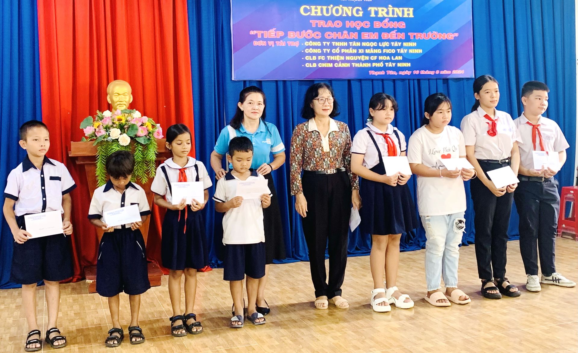 Ngoài ra, Câu lạc bộ thiện nguyện Cà phê Hoa Lan (xã Thạnh Tân) và Câu lạc bộ Chim cảnh thành phố Tây Ninh hỗ trợ học bổng trị giá 5 triệu đồng cho các em học sinh.