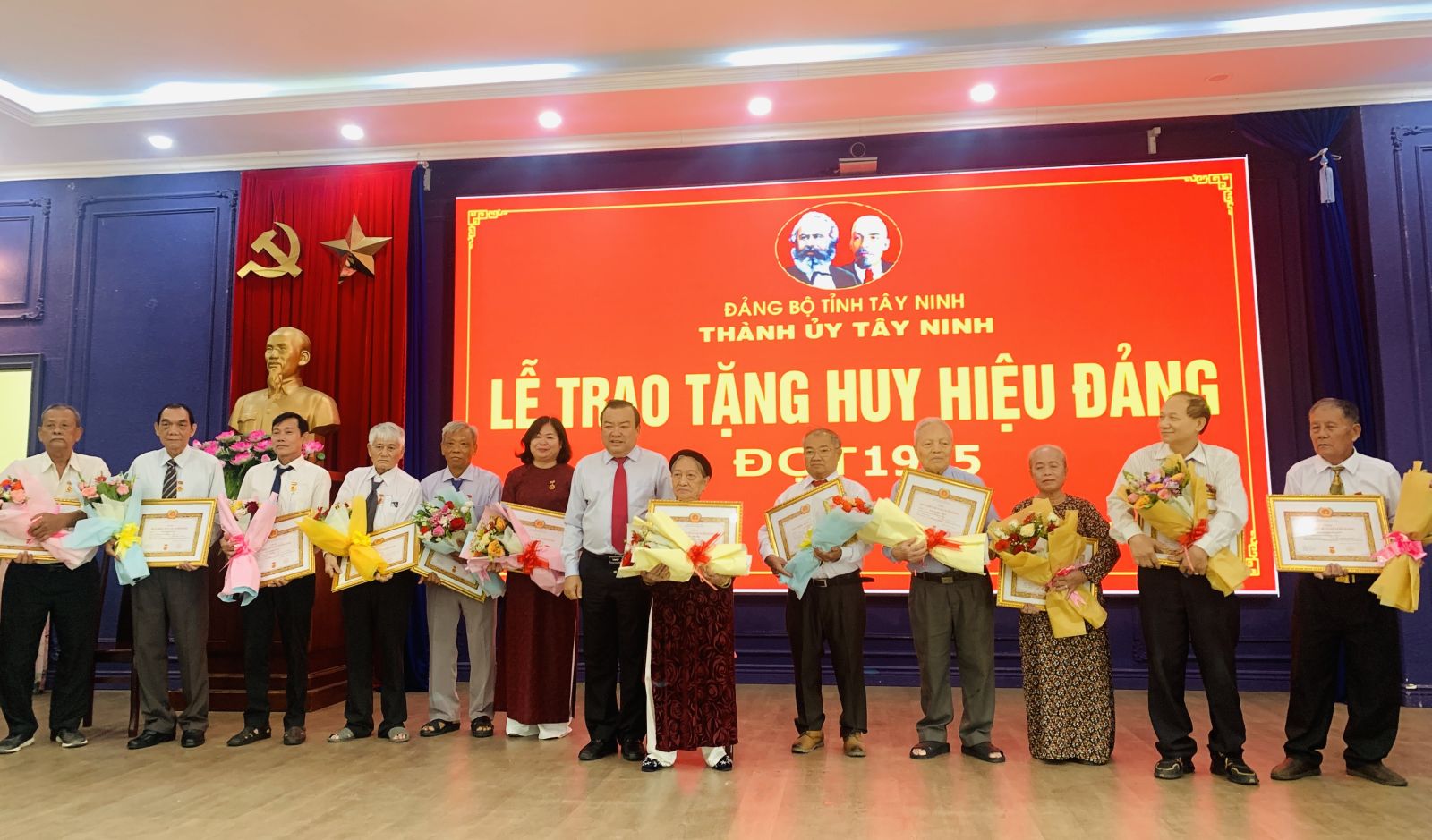 Tại buổi lễ, lãnh đạo Tỉnh uỷ và Thành uỷ Tây Ninh đã trao Huy hiệu Đảng cho 63 đảng viên. Trong đó, có 1 đảng viên 70 năm tuổi Đảng, 1 đảng viên 60 năm tuổi Đảng, 2 đảng viên 55 năm tuổi Đảng, 6 đảng viên 50 năm tuổi Đảng, 10 đảng viên 45 năm tuổi Đảng, 25 đảng viên 40 năm tuổi Đảng và 18 đảng viên 30 năm tuổi Đảng.