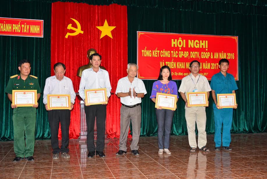 Dịp này, có 14 tập thể và 29 cá nhân có thành tích trong công tác quốc phòng địa phương, dân quân tự vệ, giáo dục quốc phòng – an ninh năm 2016 được nhận giấy khen của Chủ tịch UBND Thành phố Tây Ninh.
