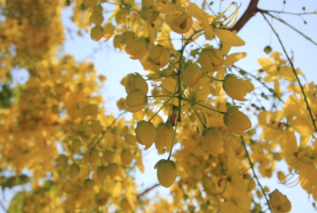 Hoa osaka vàng, hay còn có tên khác là Muồng hoàng yến, Bọ cạp nước. Loài cây có nguồn gốc từ Nam Á này ưa sáng và chịu hạn tốt nên được trồng ở hầu hết các tỉnh Tây Nguyên. Đây cũng được coi là quốc hoa của Thái Lan, với màu vàng đặc trưng, màu sắc của hoàng gia Thái Lan.
