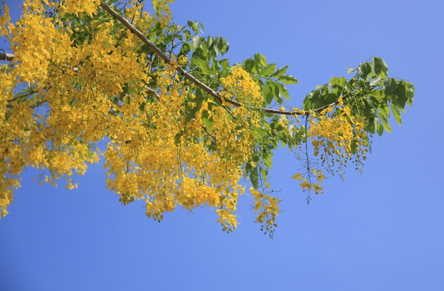 Osaka vàng kết lại thành chùm nở dọc các triền dốc, con phố. Loài hoa nổi bật với những chùm hoa nặng trĩu, cành hoa rủ xuống dài gần 40cm, với mùi hương dịu nhẹ.
