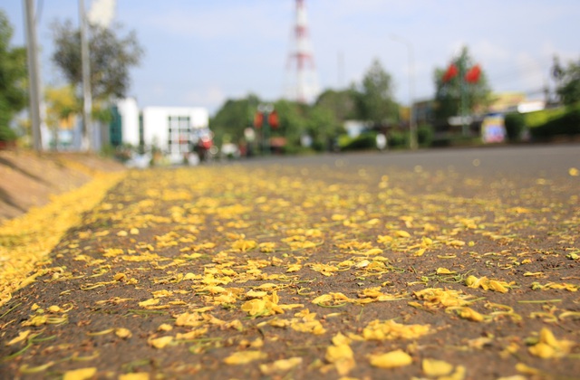 Tại khu vực trung tâm đô thị Gia Nghĩa và các khu, điểm du lịch trọng điểm, cánh hoa rơi vương đầy lòng đường, hè phố… “tô điểm” và làm "phố thị hoa vàng " trở nên quyến rũ hơn.