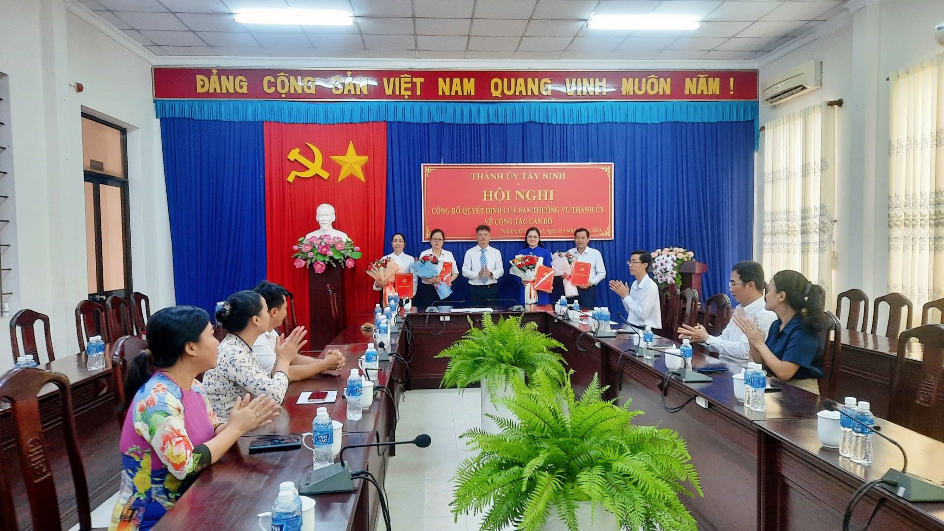 Thường trực Thành uỷ Tây Ninh vừa tổ chức công bố và trao quyết định về công tác cán bộ tại phường Hiệp Ninh, phường Ninh Thạnh, Hội Nông dân Thành phố và Văn phòng Thành uỷ.