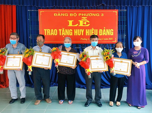 Huy hiệu 55 năm tuổi Đảng được trao cho đảng viên Bùi Thị Oanh (sinh năm 1945, quê quán huyện Yên Khánh, tỉnh Ninh Bình), nguyên Hiệu trưởng Trường Tiểu học Kim Đồng; Huy hiệu 50 năm tuổi Đảng được trao cho đảng viên Võ Thị Phong (sinh năm 1953, quê quán thị xã Trảng Bàng), nguyên Bí thư Đảng ủy Khối Doanh nghiệp tỉnh; Huy hiệu 45 năm tuổi Đảng được trao cho đảng viên Lê Hồng Thái (sinh năm 1954, quê quán thị xã Duy Tiên, tỉnh Hà Nam), nguyên Phó Chủ tịch Hội Cựu chiến binh Phường 3.