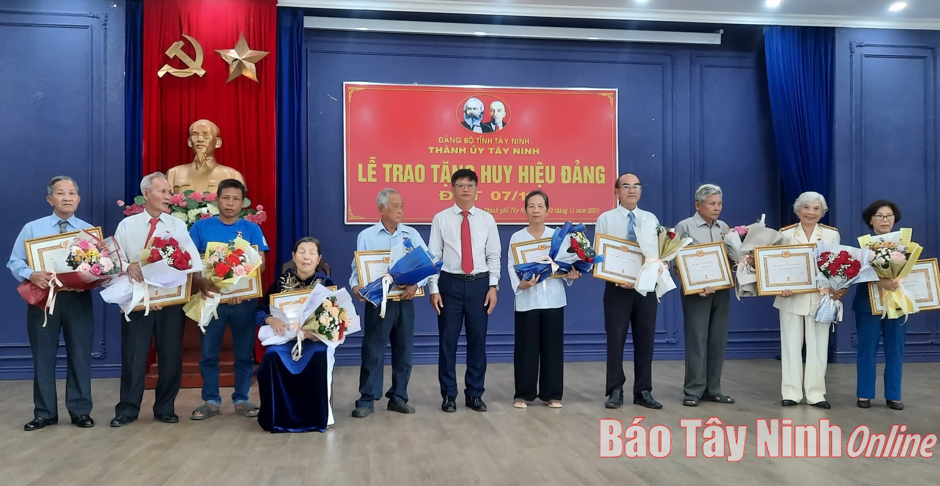Chiều 3.11, Ban Thường vụ Thành uỷ Tây Ninh tổ chức lễ trao tặng và truy tặng Huy hiệu Đảng đợt 7.11 cho 30 đảng viên sinh hoạt Đảng tại các Đảng bộ phường 1, 2, 3, IV, Hiệp Ninh và xã Tân Bình.