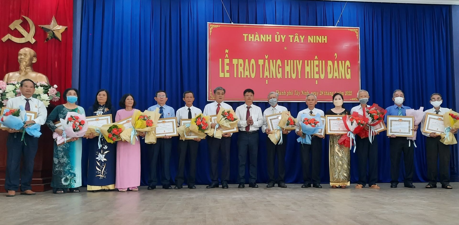 Sáng 28.4, Ban Thường vụ Thành ủy tổ chức lễ trao tặng Huy hiệu 75, 65, 60, 55, 50, 45, 40 và 30 tuổi Đảng đợt 3.2 và đợt 19.5 cho 48 đảng viên đang sinh hoạt Đảng tại Đảng bộ các phường, xã trực thuộc Thành ủy và Đảng ủy cơ quan Đảng, Đoàn thể chính trị, xã hội Thành phố.
