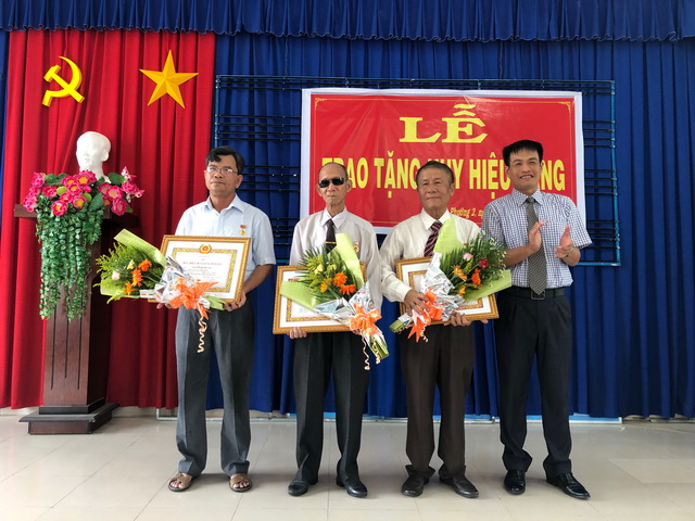 Ông Thành Từ Dũ – Phó Bí thư Thường trực Thành ủy Tây Ninh trao tặng Huy hiệu 55, 45 và 40 năm tuổi Đảng cho các đảng viên.
