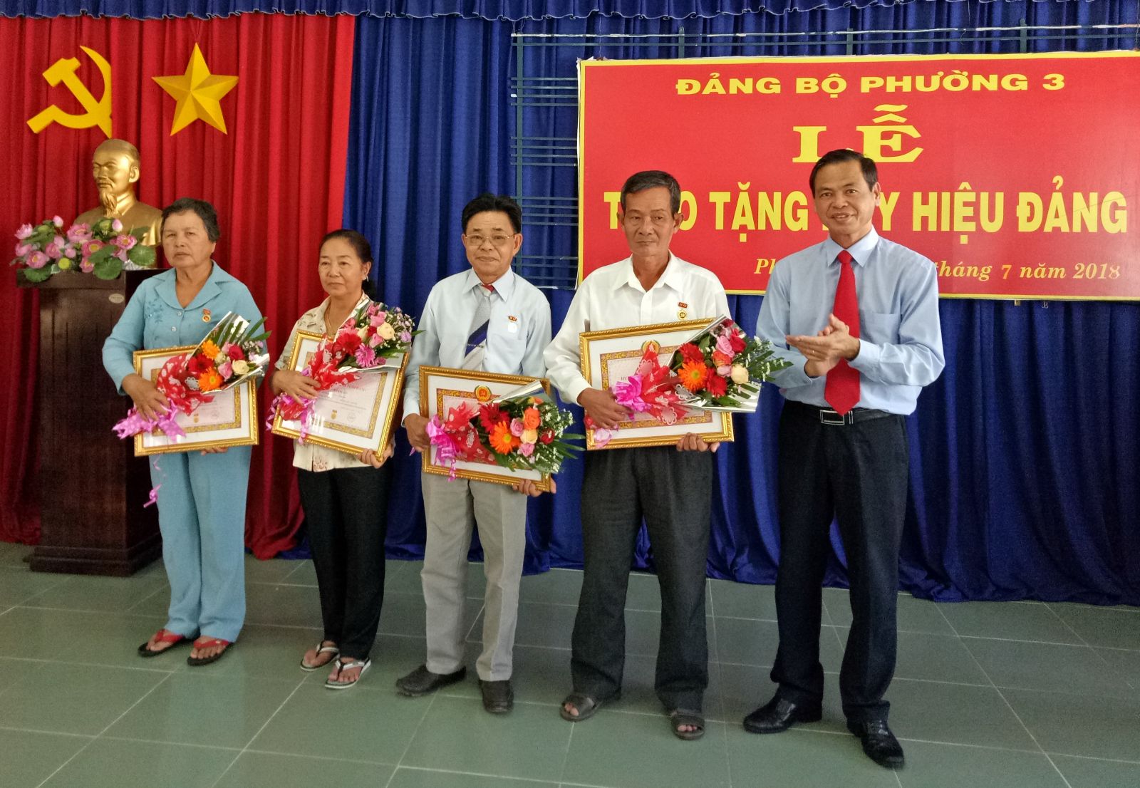 Cũng tại UBND phường 3, Bí thư Thành uỷ đã trao Huy hiệu 50 năm tuổi Đảng cho hai đảng viên Nguyễn Thị Liễu (sinh năm 1948, quê quán xã Đôn Thuận, huyện Trảng Bàng) và Lưu Thị Sen (sinh năm 1949, quê quán tỉnh Thái Bình).
