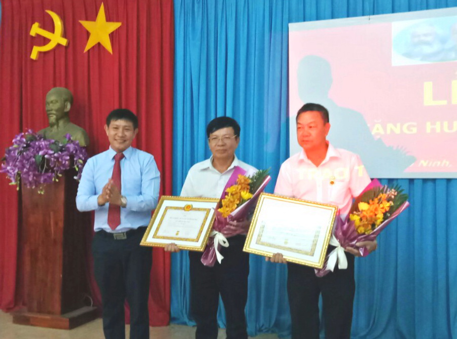 Huy hiệu 45 năm tuổi Đảng được trao cho đảng viên Vương Công Trực (sinh năm 1945, quê quán tỉnh Hà Nam) và Huỳnh Thị Thân (sinh năm 1953, quê quán xã Ninh Điền, huyện Châu Thành). Huy hiệu 30 năm tuổi Đảng được trao cho đảng viên Ngô Văn Khối (sinh năm 1964, quê quán xã Thanh Điền, huyện Châu Thành) và Ngụy Kim Anh (sinh năm 1958, quê quán xã Gia Bình, huyện Trảng Bàng).