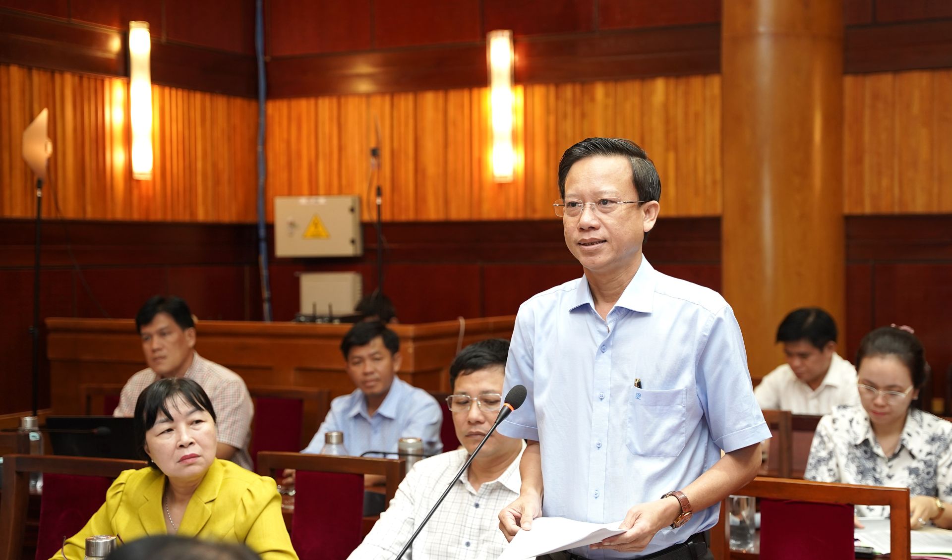 Ông Trần Anh Minh- Giám đốc Sở Văn hoá, Thể thao và Du lịch phát biểu thảo luận về các giải pháp phát triển du lịch.
