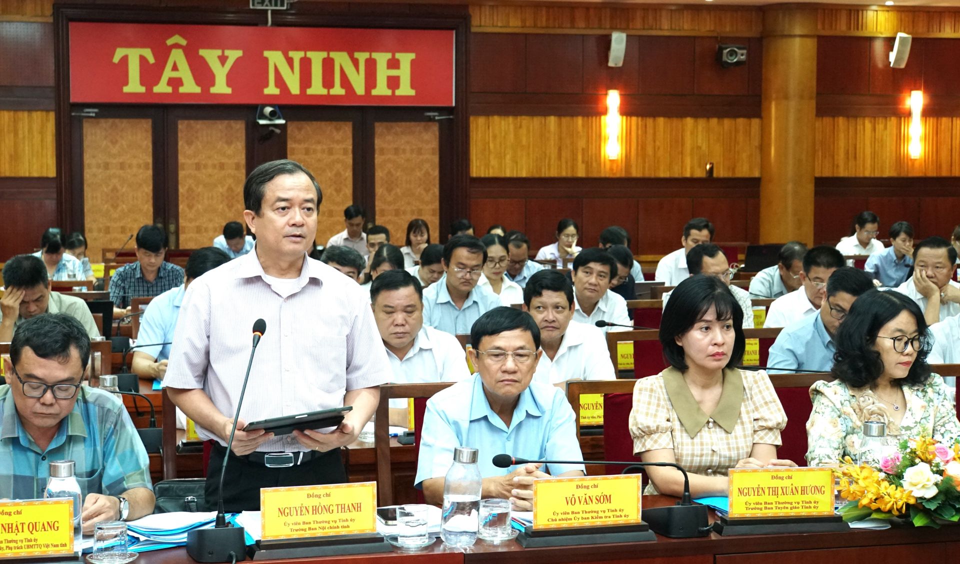 Bí thư Tỉnh uỷ Nguyễn Thành Tâm đề nghị từng uỷ viên BCH Đảng bộ tỉnh, thủ trưởng các sở, ngành rà soát và nắm chắc tiến độ thực hiện các chỉ tiêu, nhiệm vụ trọng tâm của ngành, lĩnh vực phụ trách để chỉ đạo thực hiện tốt trong quý II. Nhanh chóng cụ thể hoá các định hướng phát triển trong quy hoạch của tỉnh thời kỳ 2021-2030, tầm nhìn đến năm 2050 thành các đề án, kế hoạch, dự án bảo đảm tính thống nhất, đồng bộ và rà soát, xác định những vấn đề còn vướng mắc liên quan đến định hướng, mục tiêu đã được phê duyệt tại Quy hoạch tỉnh để báo cáo xử lý kịp thời. Giải quyết dứt điểm các tồn tại, vướng mắc để phê duyệt và triển khai thực hiện nghị quyết của Tỉnh uỷ về phương hướng phát triển thành phố Tây Ninh, điều chỉnh quy hoạch đô thị thành phố Tây Ninh cũng như đồ án quy hoạch chung của các huyện.