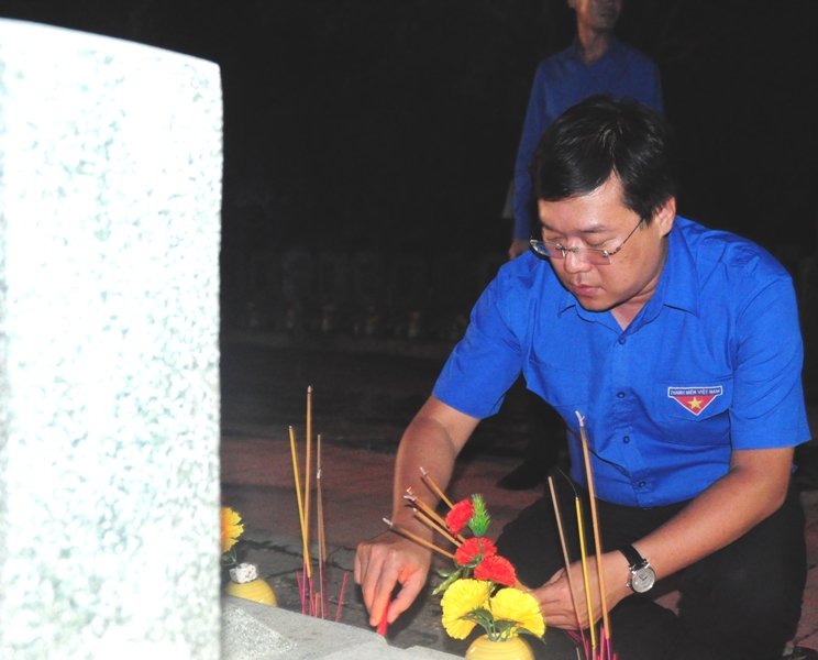 | Ông Lê Quốc Phong– Bí thư thứ nhất Trung ương Đoàn TNCS Hồ Chí Minh thắp hương tại phần mộ liệt sĩ. |