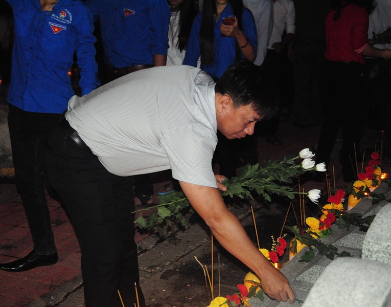 Hơn 1.400 đoàn viên, thanh niên đã tham gia cùng với các đại biểu thắp nến, thắp hương trên 13.600 ngôi mộ liệt sĩ được an táng tại Nghĩa trang Liệt sĩ Quốc gia Đồi 82.