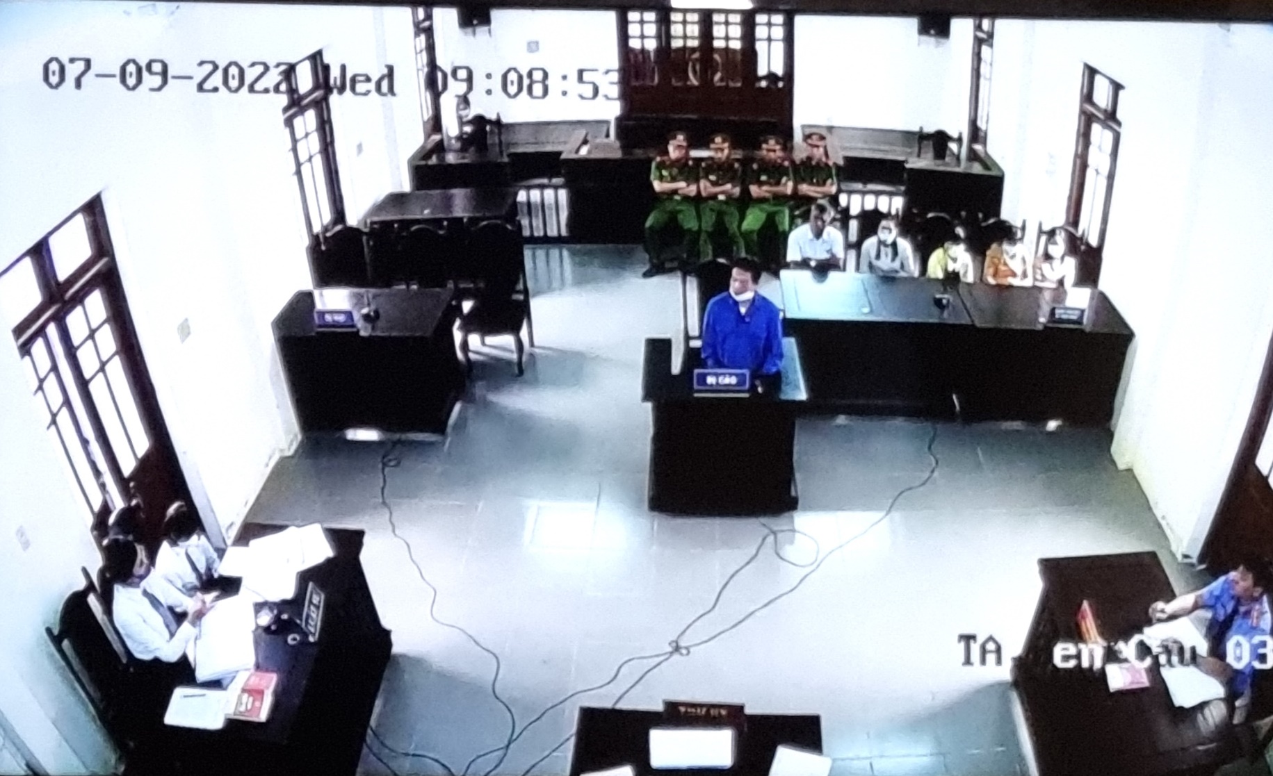 Phiên toà được xử kín, thông qua hệ thống kết nối với TAND cấp trên