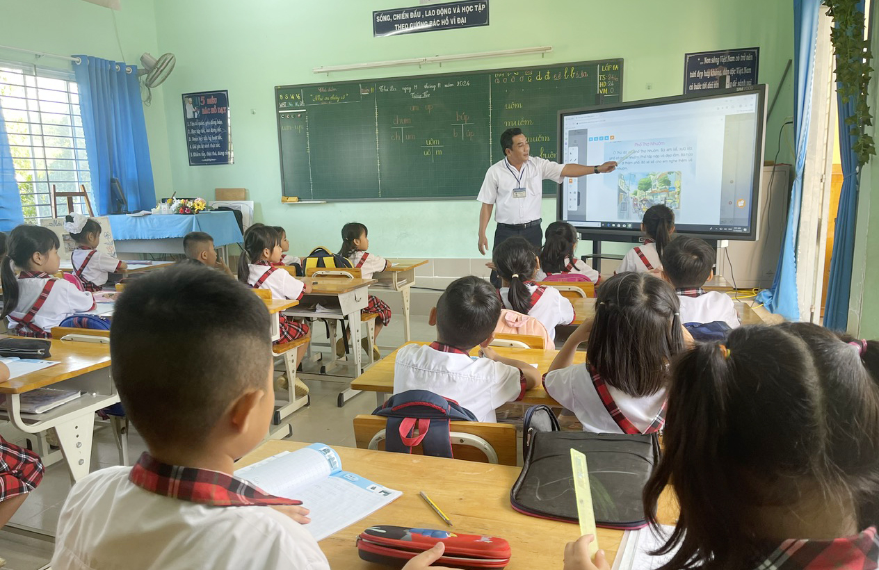 Việc áp dụng công nghệ thông tin trong giảng dạy được Trường tiểu học Trà Vong B triển khai thực hiện đồng bộ.