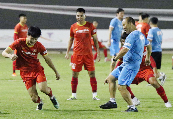 Tại buổi tập, HLV Park Hang-seo luôn cố gắng để tạo ra bầu không khí vui vẻ. Ông cũng tích cực tham gia "đá ma" cùng các học trò. Sự hóm hỉnh và gần gũi của nhà cầm quân người Hàn Quốc đã mang lại những tiếng cười vui nhộn trên sân tập.