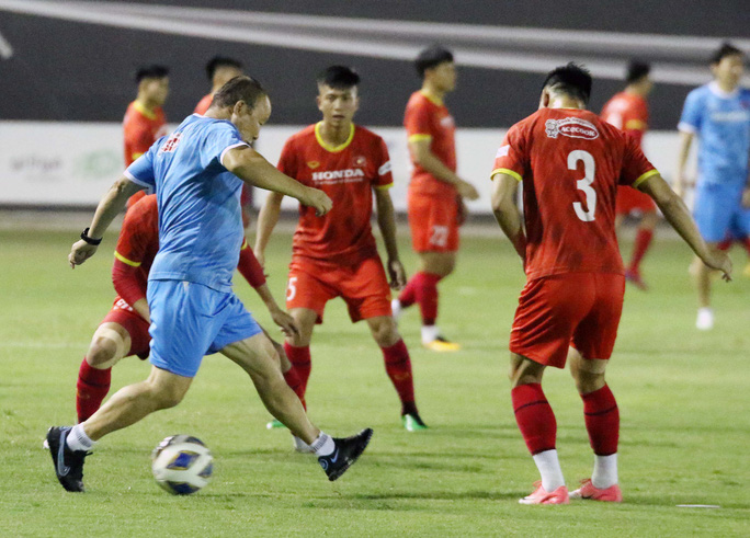Trong buổi tập tối 31-8, các cầu thủ chia từng nhóm nhỏ, mỗi nhóm có 5 người cùng nhau "đá ma"