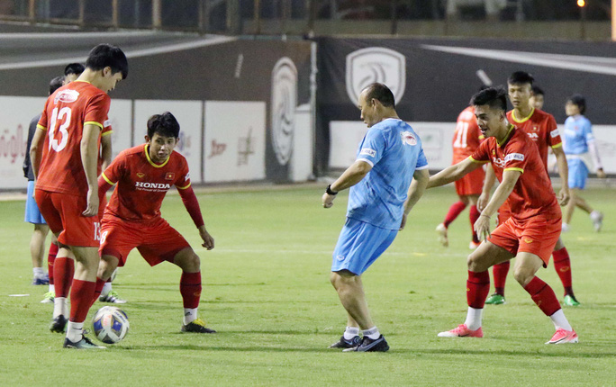 HLV Park Hang-seo đá "bóng ma" cùng các học trò.
