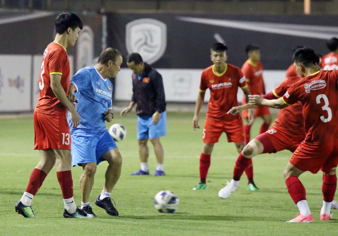 Trước đối thủ mạnh như đội chủ nhà Ả Rập Saudi, HLV Park Hang-seo rất coi trọng hàng thủ nên ông thường xuyên di chuyển ra khu vực tập luyện của thủ môn để hướng dẫn kĩ lưỡng cho các học trò