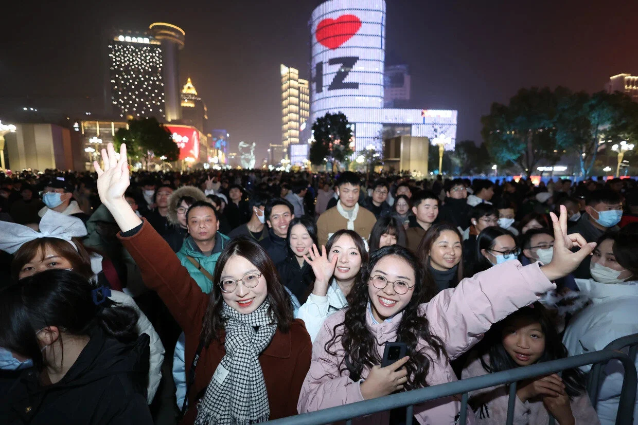 Hàng nghìn người tham dự lễ đón giao thừa tại Quảng trường Vũ Lân ở thành phố Hàng Châu, tỉnh Chiết Giang, Trung Quốc. (Ảnh: VCG/Getty Images)