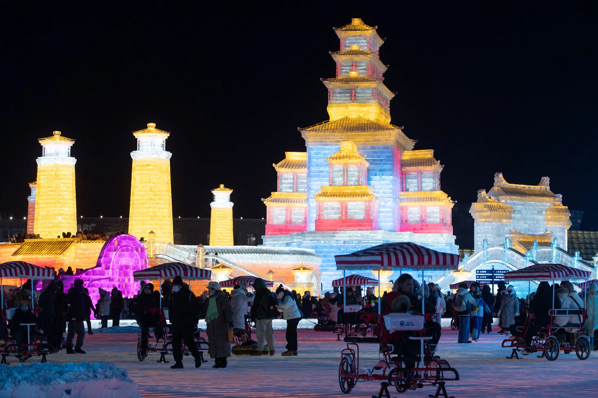 Khu thắng cảnh Thế giới Băng tuyết Cáp Nhĩ Tân ở tỉnh Hắc Long Giang, phía đông bắc Trung Quốc, trong ngày cuối cùng của năm 2023. (Ảnh: AFP)