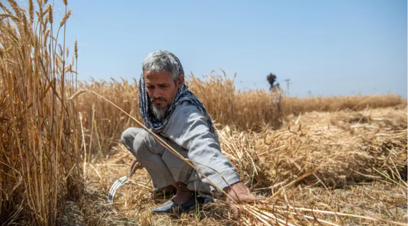 Một người đàn ông 60 tuổi đang thu hoạch lúa mì ở bang Uttar Pradesh, Ấn Độ. (Ảnh: Getty Images)