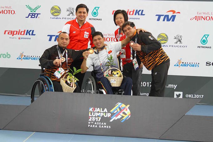 Võ Thanh Tùng (người ngồi giữa)- VĐV bơi "thượng thặng" tại ASEAN Para Gams 2017.