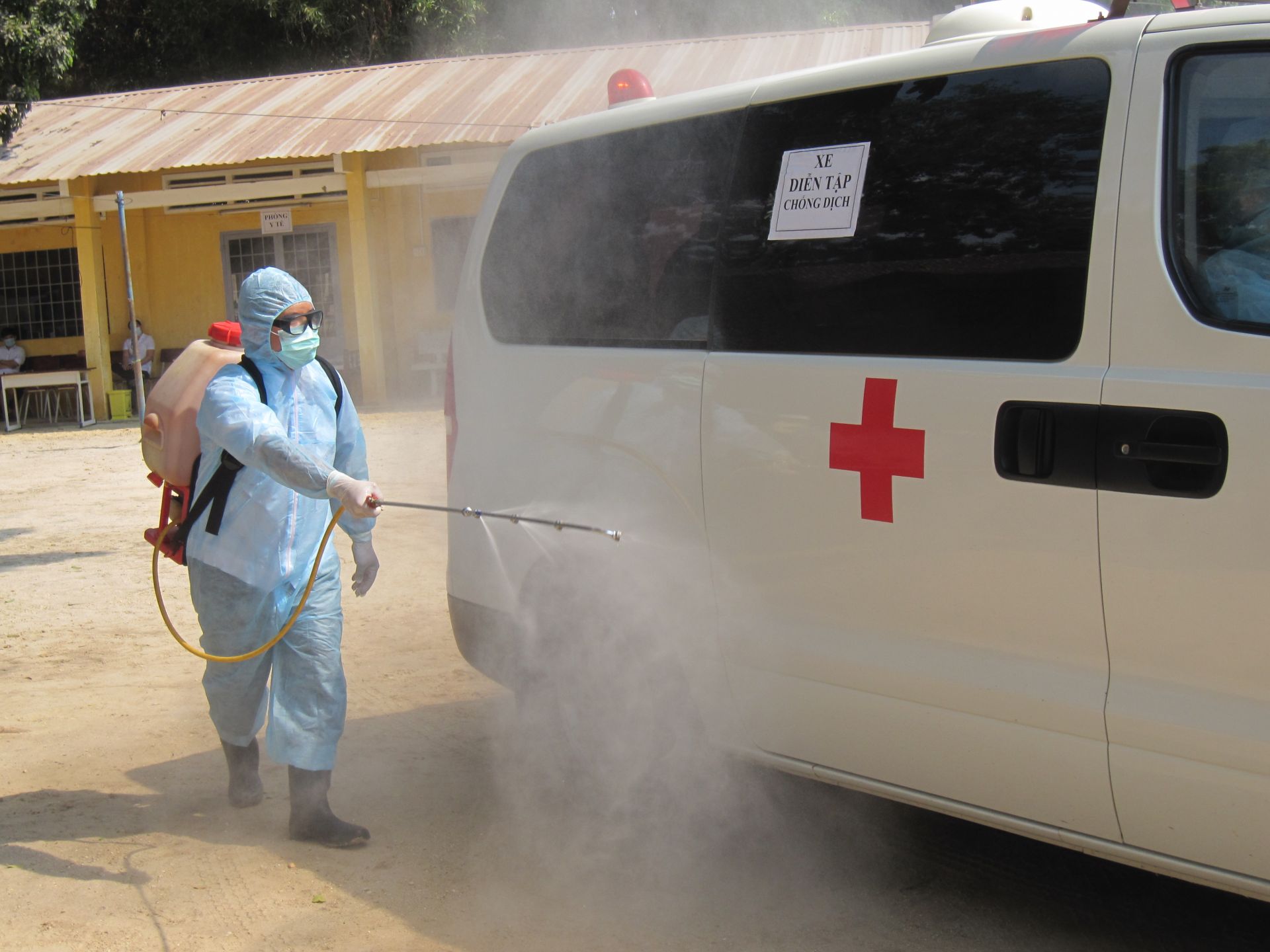 Phun khử trùng xe ra vào khu cách ly- Ảnh minh hoạ