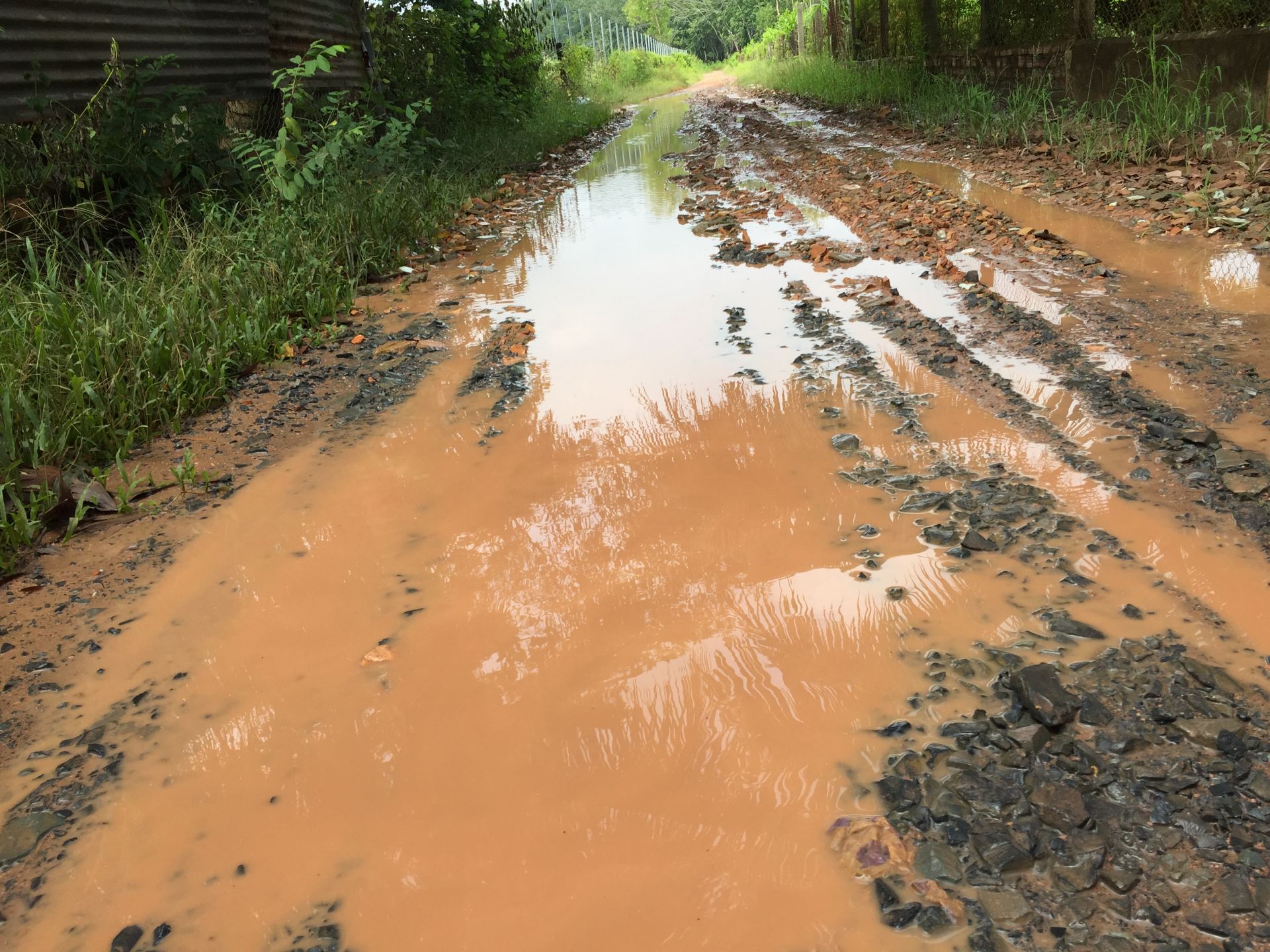Đường sình lầy do kênh mương nội đồng gây ra.
